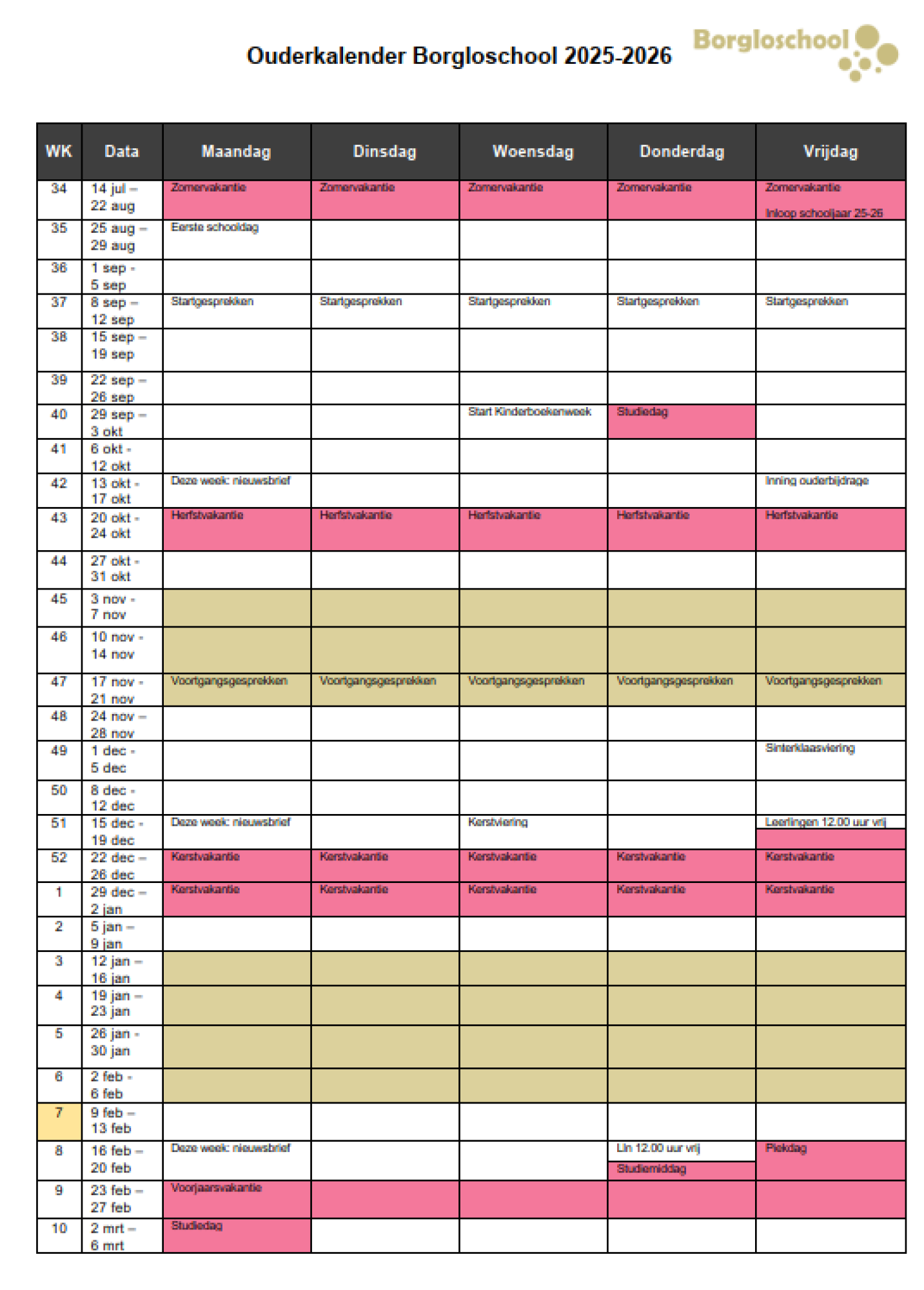 De nieuwe ouderkalender voor schooljaar 2025-2026 staat nu op de website.